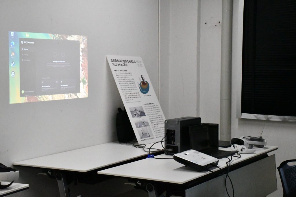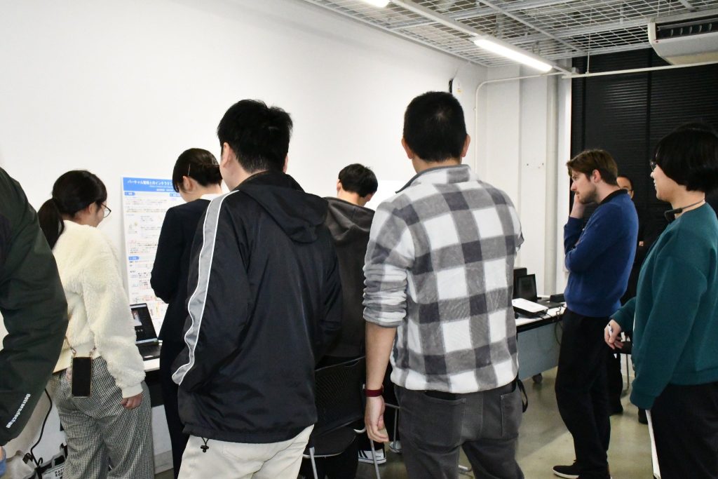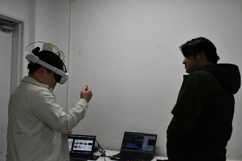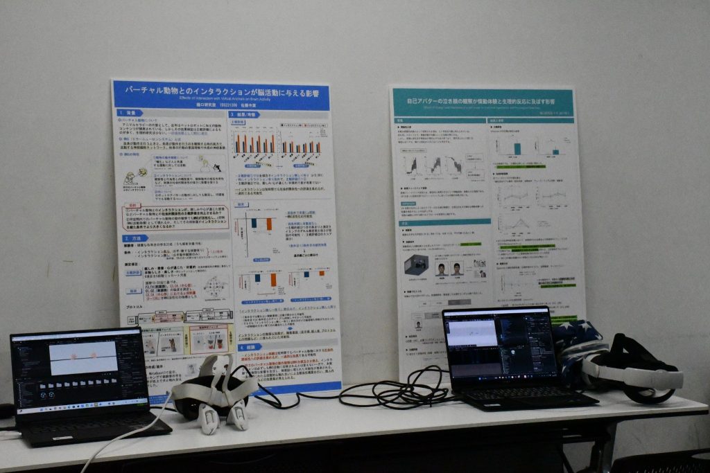 また、会場内のインタラクティブブースでは、VRゴーグルを用いた体験展示も実施され、参加者は実際にバーチャル空間を体験しながら研究内容への理解を深めました。体験を通じて得られた気づきや感想をもとに、発表内容と関連づけた意見交換も行われました。